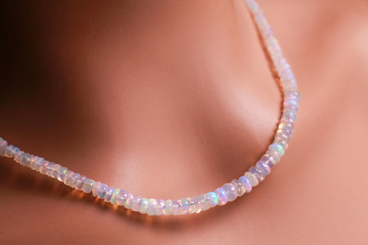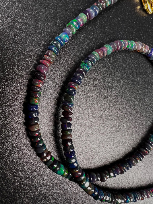 Genuine Ethiopian Opal Multi Pink blue green Disco Welo Fire Opal 4.5mm large Roundel Necklace Fiery Opal Jewelry Gift