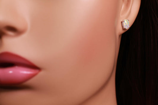 Ethiopian Welo Opal Stud Earrings, Sterling Silver, AAA Quality