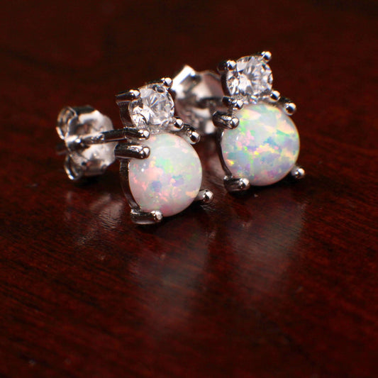 Genuine Ethiopian Fire Opal, Welo Opal, 6mm Round CZ Diamond top 925 Sterling silver Stud Earrings Fiery Opal 925 stamped Elegant Gift