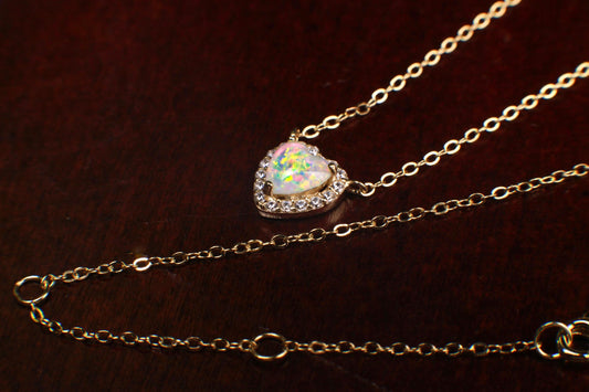 Genuine Ethiopian Fire Opal, Welo Opal Heart CZ diamond Pendant in 925 Sterling Silver, 22K Gold Vermeil Adjustable Necklace AAA Quality