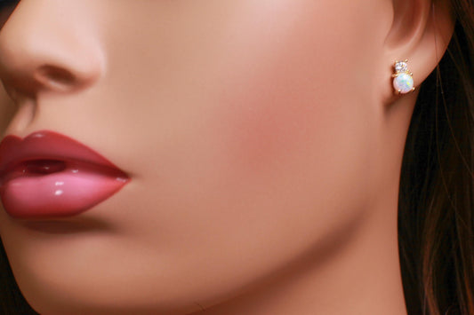 Ethiopian Fire Opal, Welo Opal, 7mm Double Heart CZ Diamond Stud Earrings 925 Sterling Silver AAA Fiery Opal Elegant Earring valentines gift