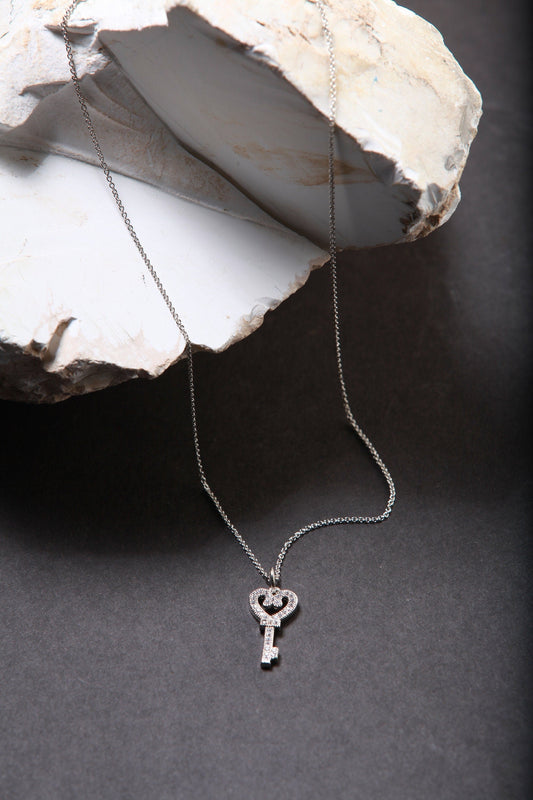 Zierlicher Schlüsselanhänger mit Zirkonia CZ und 925er Sterlingsilber-Kette, 40,6 cm