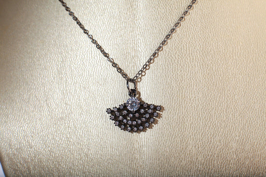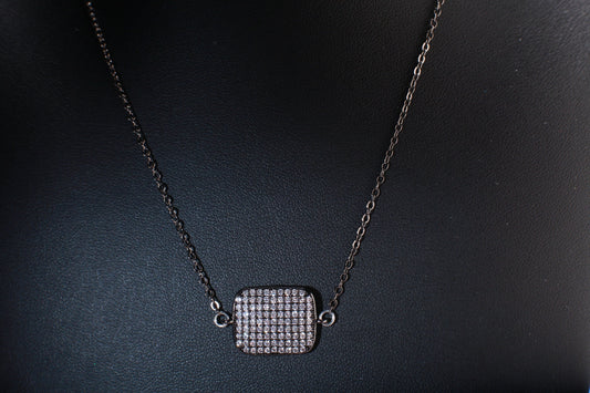 Oxidierte Zirkonia und Diamant-Mikropflaster, glitzernde kissenförmige Halskette mit 16"-Anhänger und 2"-Verlängerungskette