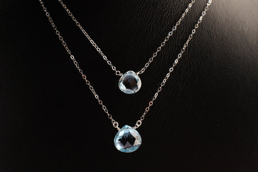 Schweizer Blautopas, facettiert, Herz-Briolette, Tropfenform, AAA-Qualität, 10,5 mm und 12,5 mm geschliffene Edelsteine in 925er Sterlingsilber-Halskette, Geburtsstein für Dezember