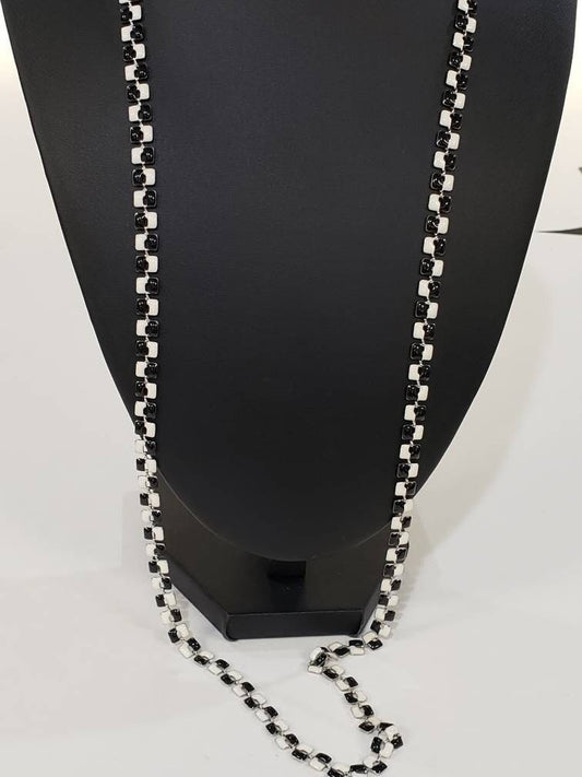 Halsband oder lange, schlichte Halskette aus rhodiniertem, verdrehsicherem Emaille-Design in Schwarz und Weiß.