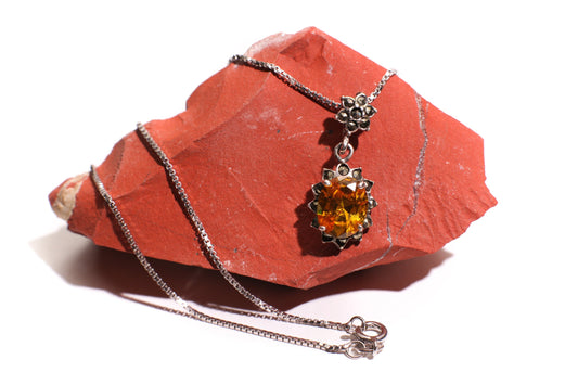 Echter Citrin 925 Sterling Silber Markasit Vintage, Antiker Anhänger mit passender 925 Sterling Silber Rhodium Box Kette 16",I8" Halskette,