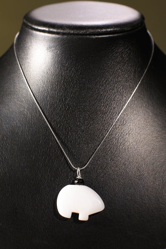 Großer Zuni-Bär aus weißer Jade 22x30mm in 925 Sterling Silber Schlangenkette, natürliche Edelsteine