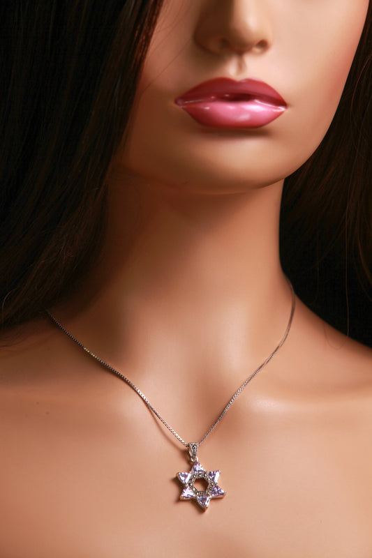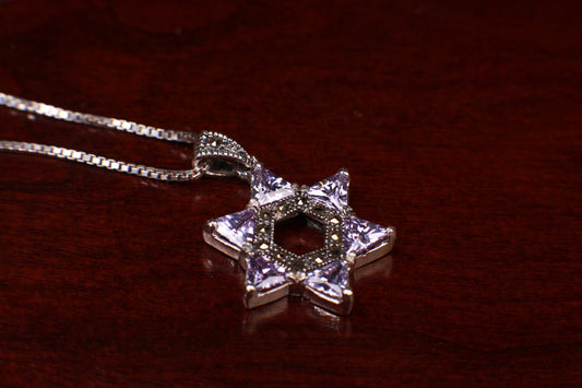 Vintage Marcasite Star of David Lavender Amethyst 925 Sterling Silver Pendant necklace. 925 stamped, Lavender Amethyst Lilac Jewish pendant