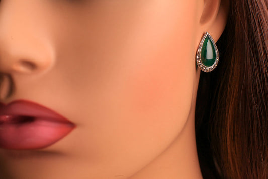 Vintage Markasit 925 Sterling Silber, Grüner Onyx 13x20mm Tropfenohrringe. 925 gestempelt, Antikes Vintage Geschenk für Sie
