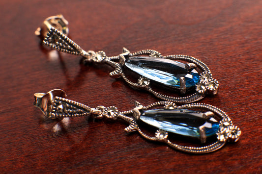 Vintage Markasit 925 Sterling Silber Swiss Blue Topas baumelnde Tropfenform Ohrstecker, 925 gestempelt, schönes elegantes Geschenk für Sie