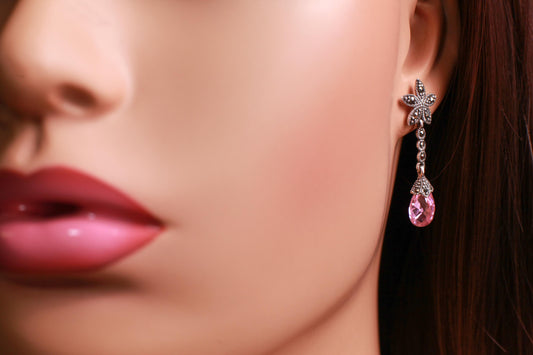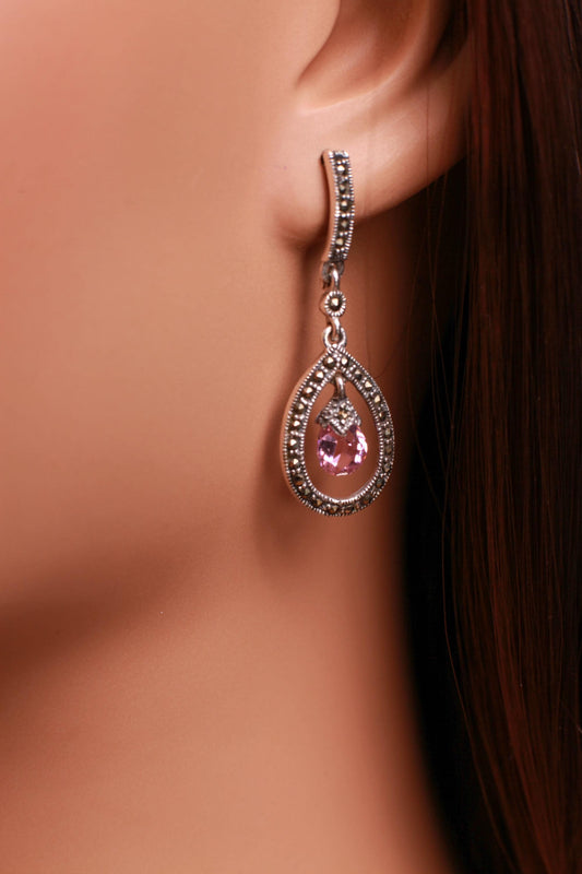 Vintage Markasit 925 Sterling Silber Rosa Topas 6x9mm Tropfenförmige Ohrringe. 925 gestempelt, Antikes Vintage Geschenk für Sie