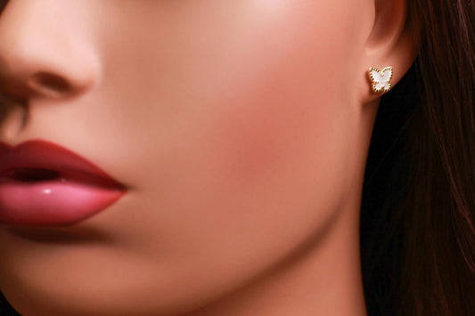 Weiße Perlmutt 8mm Schmetterling 925 Sterling Silber über Gold Vermeil Post Ohrringe, Brautjungfer, Braut, Hochzeit, Geschenk, 925 gestempelt