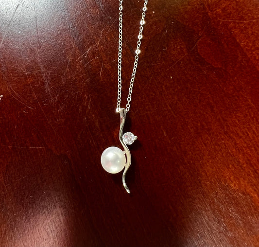 925 Sterling Silber CZ Diamant Süßwasser Perle Anhänger mit Sterling Silber Kette Halskette Geschenk, 925 gestempelt 14"-30"
