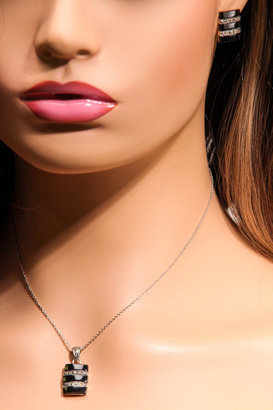 925 Sterling Silber Markasit 12x15mm Schwarzer Onyx Ohrstecker und Anhänger Sterling Silber Kabelkette Halskette Schmuckset, 925 gestempelt