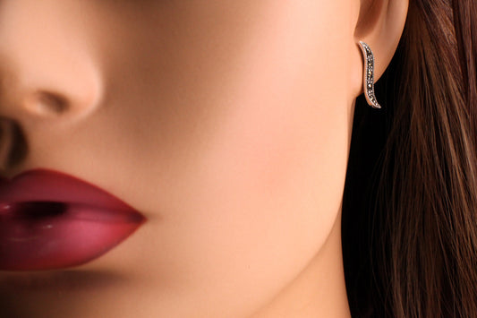 Ohrstecker aus 925er Sterlingsilber mit schwarzem Onyx, 17 mm, ausgefallene Markasit-Ohrstecker. 925er-Stempel, antikes Vintage-Geschenk für Sie