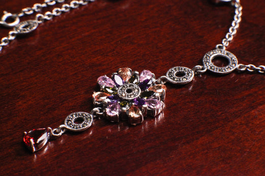 Vintage Markasit 925 Sterling Silber Rosa, Gelber Topas Anhänger Baumeln mit Granat Tropfen 16" Halskette. 925 gestempelt, Antikes Geschenk für Sie