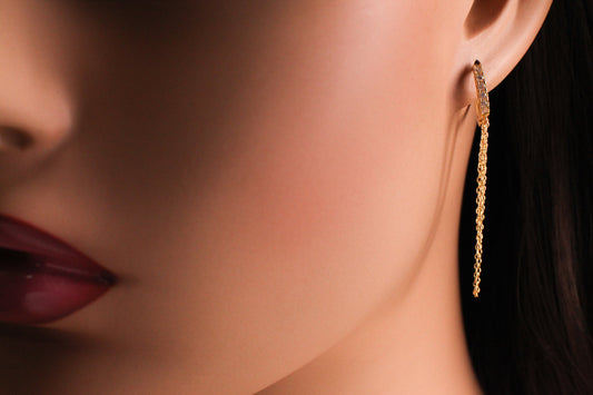 22 Karat Gold Vermeil 925 Sterling Silber CZ Diamantfassung und 2-reihige Kette baumelnder Huggie Creolen-Ohrring, 925 gestempelt, wunderschöner Goldohrring