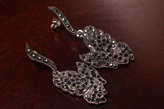 Vintage Markasit 925 Sterling Silber großer Schmetterling 17x44mm Ausgefallene Post Ohrringe, Vintage, 925 gestempelt Antikes Geschenk für Sie