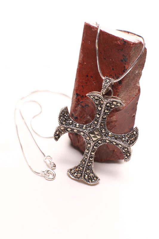 Vintage Markasit 925 Sterling Silber Kreuz 32x40mm langer Anhänger, Sterling Silber Kette Vintage, 925 gestempelt