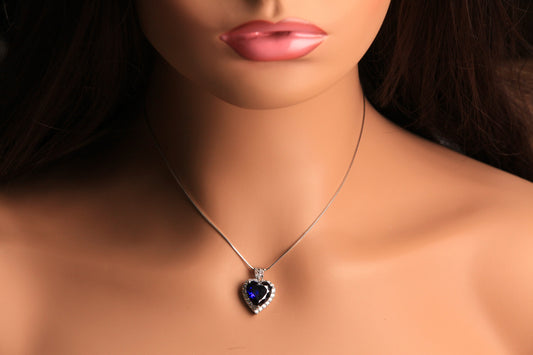 Blauer Saphir CZ Diamantfassung Ozean des Herzens Anhänger 925 Sterling Silber Halskette Italienische Sterling Silber Schlangenkette,Geschenk
