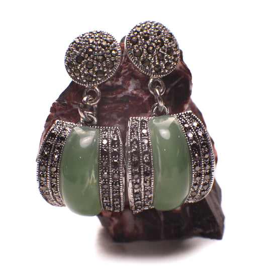 Markasit Jade Ohrringe 925 Sterling Silber Post Ohrringe, Vintage, Antike Markasit Ohrringe Geschenk für Sie