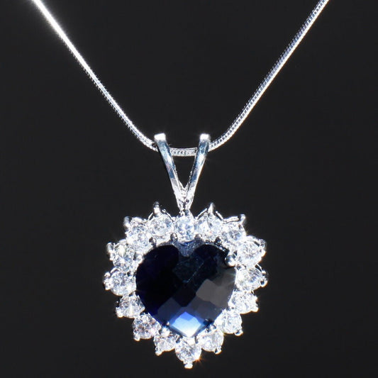 Blauer Herz CZ Anhänger 925 Sterling Silber Zirkonia Saphir Blau Ozean Herz Pave CZ Diamant Stil, Italienische Sterling Silber Kette, Geschenk