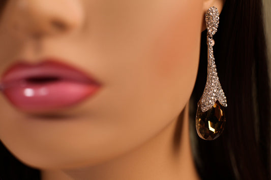 Brandy Topas Langer Tropfen, Tropfenförmige baumelnde CZ Pave Silber Ohrringe, Whisky Farbe Topas Abendmode, Boho, Braut, Ausgefallene Ohrringe