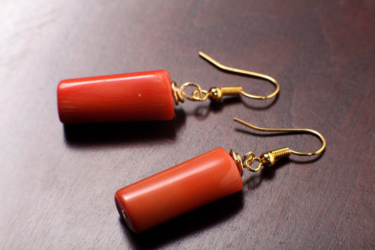 Bambus Koralle Ohrringe, Natürlicher Freiform Ast Rosa Stab 10x22mm Röhre Gold Ohrhänger, Geschenk für Sie