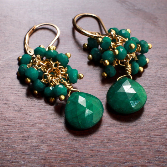 Natürlicher Smaragd Facettierte Herz Briolette Tropfen,Natürliche Smaragd Cluster in 14K Gold filled Haken,Leverback Edelstein Ohrringe, Geschenk für Sie
