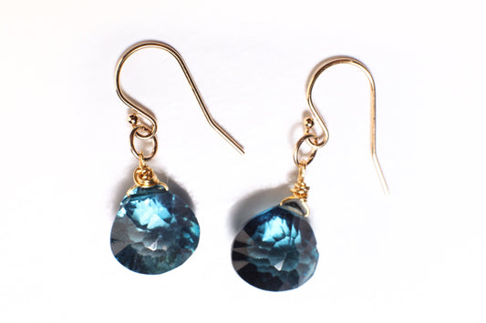 London Blue Topaz Quartz 12mm Facettiert Herzform Birnentropfen, Draht umwickelt handgefertigte Ohrringe in 14K Gold Filled Ohrringe Geschenk Valentinstag