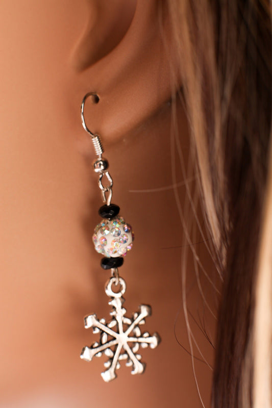 Schneeflocke Schneeball Strass Silber Schöne Weihnachten Urlaub Ohrringe