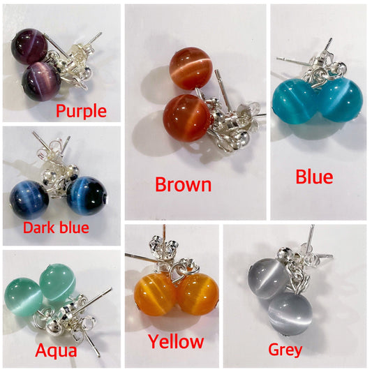 Katzenauge Kugel Post Dangling Ohrring 8mm rund, Ohrring Geschenk dunkelblau, grün, Aqua blau, blau, grau