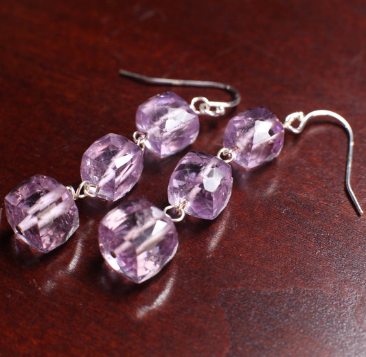 Rosa Amethyst 7-9mm Würfel baumelnde Ohrringe aus 925 Sterling Silber, beruhigender Edelstein, natürliche AAA Amethyst quadratische Eiswürfel Edelsteine