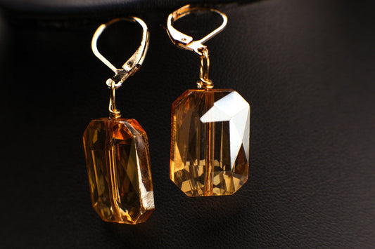 Gelber Topas Farbe Facettierte Kissenform Tschechischer Kristall 13x18mm Gold Leverback Baumeln Ohrringe, Valentinstag Geschenk
