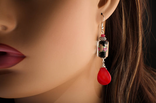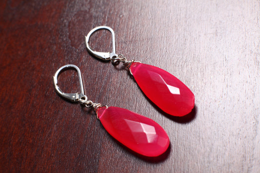 Hot Pink Chalcedon 9,5x25mm Briolette Tropfen, 925 Sterling Silber Ohrhaken oder Leverback, Boho, Edelstein Schmuck Geschenk für Sie
