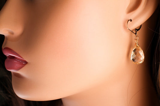 Echte Citrin-Ohrringe in Tropfenform, drahtumwickelt, 12 x 16 mm Citrin-Tropfen in 14 Karat Gold gefüllt oder 925 Sterling Silber Leverback