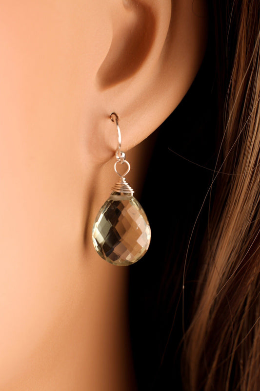 Echte grüne Amethyst-Prasiolit-Ohrringe im facettierten Tropfenschliff, AAA-Edelstein, 10 x 14 mm Tropfen aus 925er Sterlingsilber, 14 Karat vergoldeter Ohrhaken