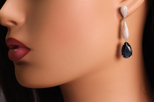 Echter blauer Saphir 10x14 Tropfen CZ Diamant, 925 Sterling Silber Hochwertiger Ohrhänger, 925 gestempelt, Geburtsstein September