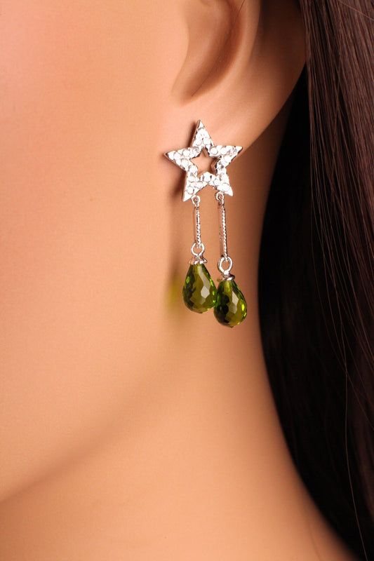 Echte Peridot-Briolette-Ohrstecker, 6 x 11 mm, aus 925er Sterlingsilber mit Zirkonia, wertvolles Geschenk für sie, 925er-Stempel