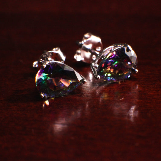 Mystischer Topas, 6 x 8 mm Aurora Borealis-Ohrstecker in Tropfenform aus 925er Sterlingsilber, zierliche, elegante Ohrringe in Lila in AAA-Qualität. 925-Stempel