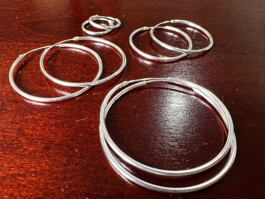 925 Sterling Silber Endlose Creolen Minimalistische Creolen zum einfachen Tragen. 1,5 mm Dicke, 925 gestempelt, 14 mm, 25 mm, 30 mm, 35 mm, 1 Paar