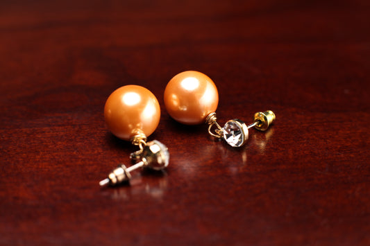 Honiggelbe Südsee-Muschelperle 12 mm, 14 mm große, hochglänzende Ohrringe, Leverback oder Kristallstecker, Braut, Geschenk für Sie