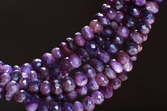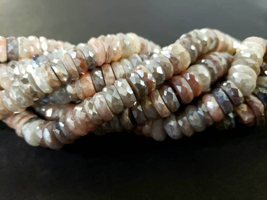 Mondstein-Rondell, echter Mondstein, mystisch-lila beschichtet, hochwertige facettierte Rondellen in 8–9 mm Edelsteinperlen, 4" und 8" Strang