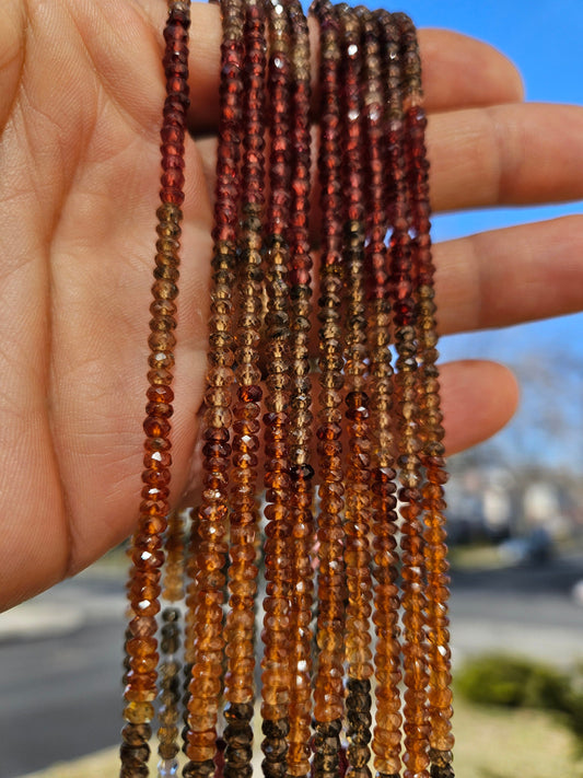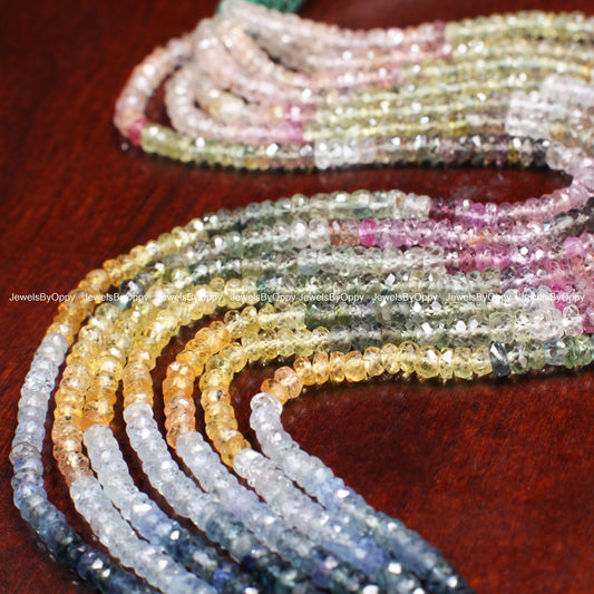 Natürlicher, facettierter, mehrsaphirfarbener, schattierter 3,5-mm-Rondelle, Edelsteinperlen im Sonnenuntergangs-Saphir, 15,5-Zoll-Strang
