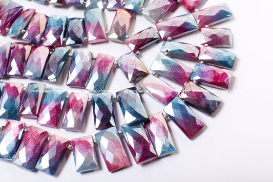 Mondstein, facettiert, rechteckig, Kissenform, Mondstein, mystisch, lila, blau, beschichtet, facettiert, Oberseite gebohrt, 10 x 17–22 mm, Edelsteinperle, 10 Zoll Strang, 21 Stück