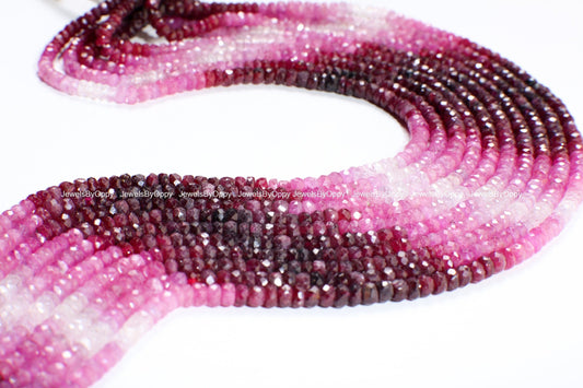 Ombre Ruby Rondelle, Natürliche Rubin facettierte Ombre Shaded Roundel Edelsteinperlen zur Schmuckherstellung, Armband, Halskette, Ohrringe
