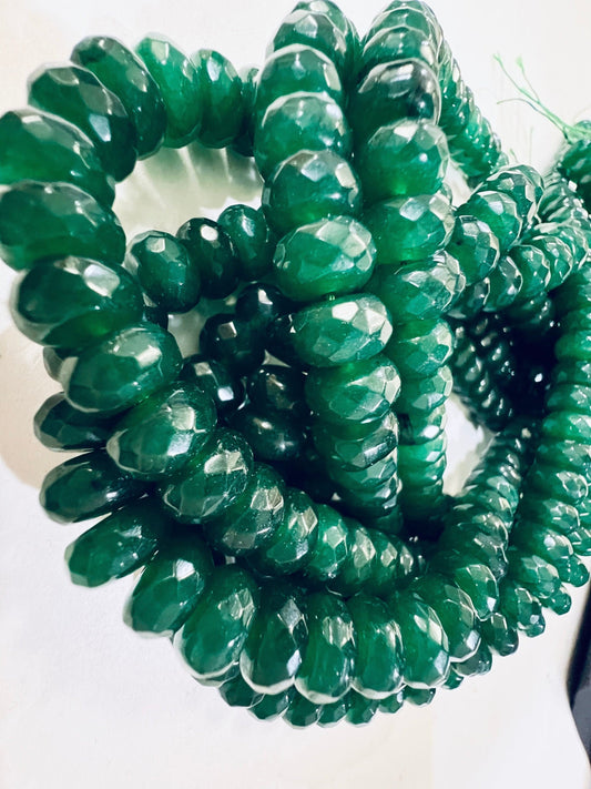 Facettierte Radform aus grüner Jade, 10 mm rundes Reifenprofil, dunkel smaragdgrüne Farbe, grüne Onyxperlen zur Schmuckherstellung, 6,5" und 13" Strang