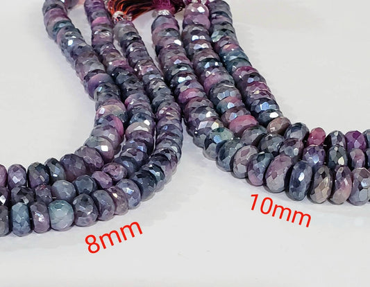 Natürlicher mehrfarbiger Silberit-Saphir, facettierte Rondell 6,5–8 mm, selten, schwer, Edelsteinperlen zur Schmuckherstellung, 3", 6", 13" Strang