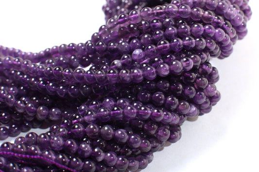 Amethyst, rund, 4 mm, zur Schmuckherstellung, Halskette, Armband, DIY, Edelstein, lila, glatt, runde Perlen, 15,5 Zoll Strang