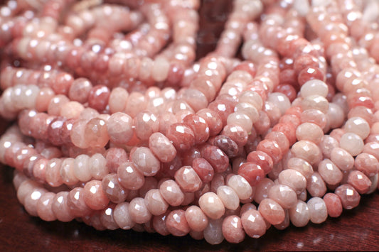 Mystisches, mehrfarbiges, pfirsichfarbenes Mondstein-Reifenrad-Rundstück in AAA-Qualität, 8,5–9,6 mm. Hochwertige Edelsteine zur Schmuckherstellung, 10-Zoll-Strang.